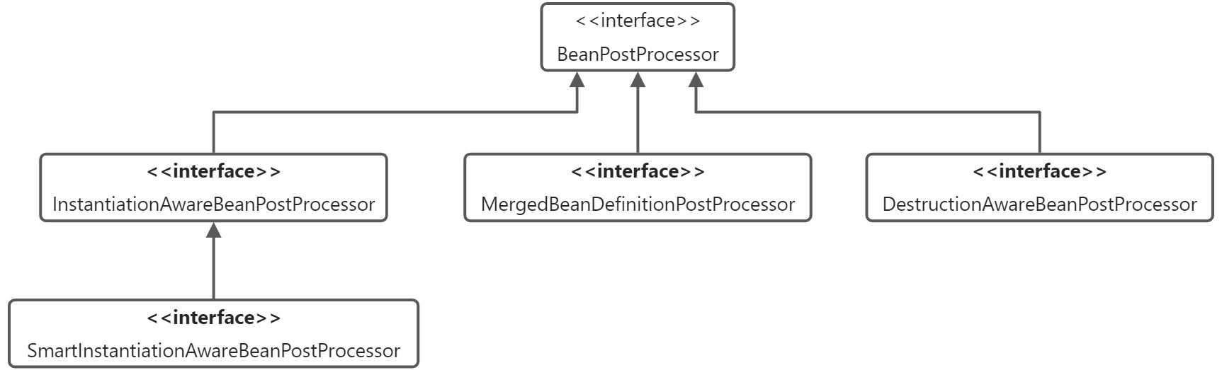 MergedBeanDefinitionPostProcessor也是BeanPostProcessor的子接口。它在BeanPostProcessor的基础上新增了两个接口。
