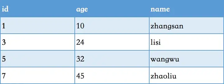 下面有张表 id主键,age普通索引