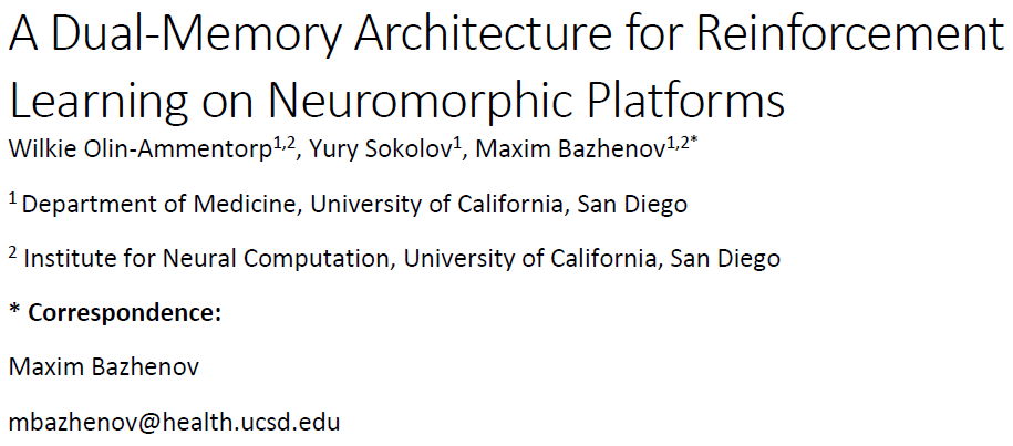 为了实现这些目标,我们描述了一个用于执行RL任务的高级系统,该系统受到生物计算的几个原则的启发,特别是互补学习系统理论5,假设学习大脑中的新记忆取决于皮层和海马网络之间的相互作用。我们表明,这种"双记忆学习器"(DML)可以实现可以接近RL问题最佳解决方案的方法。然后以脉冲方式实现DML架构并在英特尔的Loihi处理器上执行。我们演示了它可以解决经典的多臂赌博机问题,以及更高级的任务,例如在迷宫中导航和纸牌游戏二十一点。据我们所知,这些先进的多步问题以前没有被证明可以单独由神经形态系统解决。我们描述了它当前实现的性能,评论了它的特性和局限性,并描述了它在未来工作中可以进行的改进。