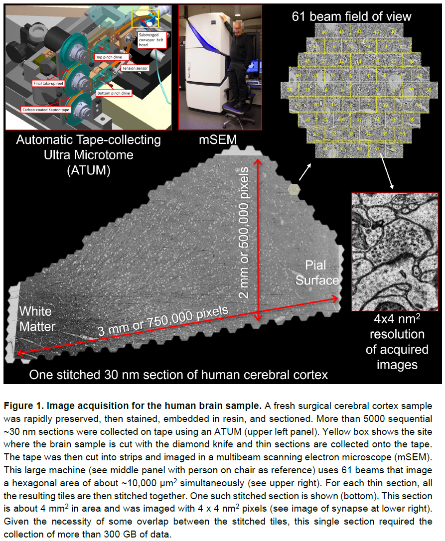 虽然与其他动物相比,人类大多数重要器官所执行的功能并没有显著差异,但人类大脑显然将我们与地球上的其他生命区分开来。它是一种极其复杂的组织,迄今为止,人们对其细胞微观结构,尤其是其突触回路知之甚少。这些电路是人类大脑无与伦比的能力的基础,一旦被破坏,很可能是人类大脑功能无法治愈的疾病的基础。阻碍对人脑细胞和回路的详细了解的一个关键障碍是获得高质量的人脑组织。器官活检在许多人体器官系统中提供了有价值的信息,但除了检查或切除肿瘤块外,很少在大脑中进行活检,因此,它们中的大多数对于研究人脑结构的价值不大。此外,对于许多器官系统,来自模式生物的组织对人类疾病很有用:小鼠肝脏或肺可以提供对人类病理生理学的见解。人的大脑是不同的。我们没有很多好的认知和发育障碍模型(尽管这可能会随着对非人类灵长类动物的基因操作而改变1)。此外,人类的大脑显然与老鼠的大脑不同,如果我们按照功能曲目来看,人类与其他灵长类动物有很大的不同。因此,我们必须找到探索人类脑组织本身的方法。一种尝试是使用由人类细胞制成的大脑类器官。这当然是一个有前途的领域2-4但目前它们不接近脑组织结构(例如,不存在皮质层),也没有类似于人脑中的电路。类器官的替代方法是直接方法:使用最先进的工具从人体标本中绘制细胞和电路图。由于对皮质被丢弃或破坏的神经系统进行了神经外科干预,因此可以获得人体标本,因为它阻碍了进入。人体组织是患者神经外科手术的副产品,可以用来了解正常的,也许是紊乱的人体神经回路。此类样本的一个来源是患有耐药性癫痫的个体。这些患者有时会通过脑电图5确定的病灶部位的侵入性手术摘除进行治疗。最常见的局灶性癫痫类型发生在颞叶的内侧,当通过神经外科治疗时,它是通过单侧切除内侧结构,通常包括海马体。内侧结构的进入通常通过横断覆盖的颞叶皮层,有时会去除大量的颞叶(接近半立方厘米)。耐药性癫痫患者人数众多(在美国,约750000名患者),但每年接受癫痫手术的人数很少(0.2%)(Natl. Assoc. of Epilepsy Centers, 2014)。尽管如此,美国每年有1500名患者可能提供组织。