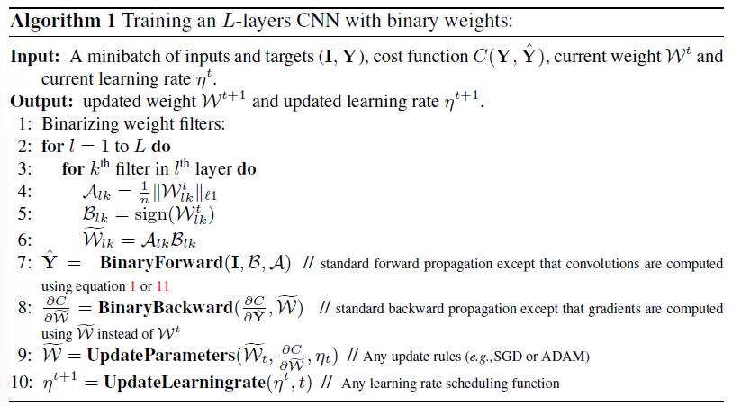 一旦我们有了二值CNN结构,训练算法将与算法1相同。