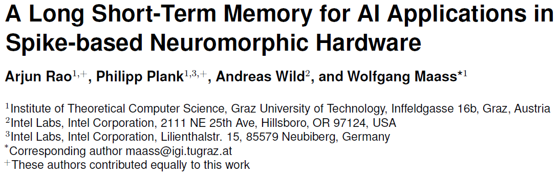 一个更具体的开放问题是如何在基于脉冲的神经形态硬件中高效地实现用于序列处理任务的DNN的LSTM单元。我们展示了生物神经元的一个特征,即存在迄今为止尚未包含在神经形态硬件模型中的缓慢变化的内部电流,赋予脉冲神经元(SNN)网络与DNN中的LSTM单元类似的工作记忆能力。特别是,缓慢的超极化后(AHP)电流会降低生物神经元在最近的发放活动后再次发放的准备情况。这种效应在神经科学中称为脉冲频率适应,参见Benda等人2和Gutkin等人3。Allen研究所的实验数据表明,新皮层中有相当数量的神经元,例如人类额叶中超过三分之一的兴奋性神经元表现出脉冲频率适应。我们表明,AHP神经元不仅通过减少发放活动来节省能量,它们还为解决序列处理任务提供了LSTM单元的原则性替代方案,并且它们支持通过BPTT(时序反向传播)进行训练。