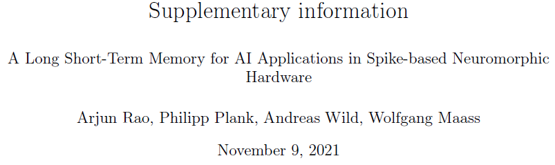 连续变量的值可以存储在LSTM的存储单元中,对其的读写访问由具有sigmoid激活函数的辅助神经元控制。一个带有脉冲神经元的LSTM单元6的直接实现是对存储变量和辅助门的连续值输出进行发放率编码。因此,这不能达到节能的稀疏发放机制。Shrestha等人7表明,如果在LSTM单元已经相当复杂的电路中添加一些巧妙的子电路和存储和释放机制,则可以在IBM的TrueNorth芯片8上对其进行仿真,使用的能量比GPU少得多,但会导致更大的时延。他们测试了长度不超过36的序列的计算性能(与将在下一节讨论的sMNIST任务的标准版本中的序列长度为784进行比较)。最近,Rezaabad等人9考虑了LSTM单元的基于脉冲的实现,其中sigmoid门的每个输出都被舍入为“脉冲”或“无脉冲”。他们将生成的SNN应用于更简单的sMNIST版本,其中每个手写数字都转换为长度为28的时间序列(在每个时间步骤显示一整行像素值)。没有在神经形态硬件中实现,因此没有对这种方法进行能耗分析。