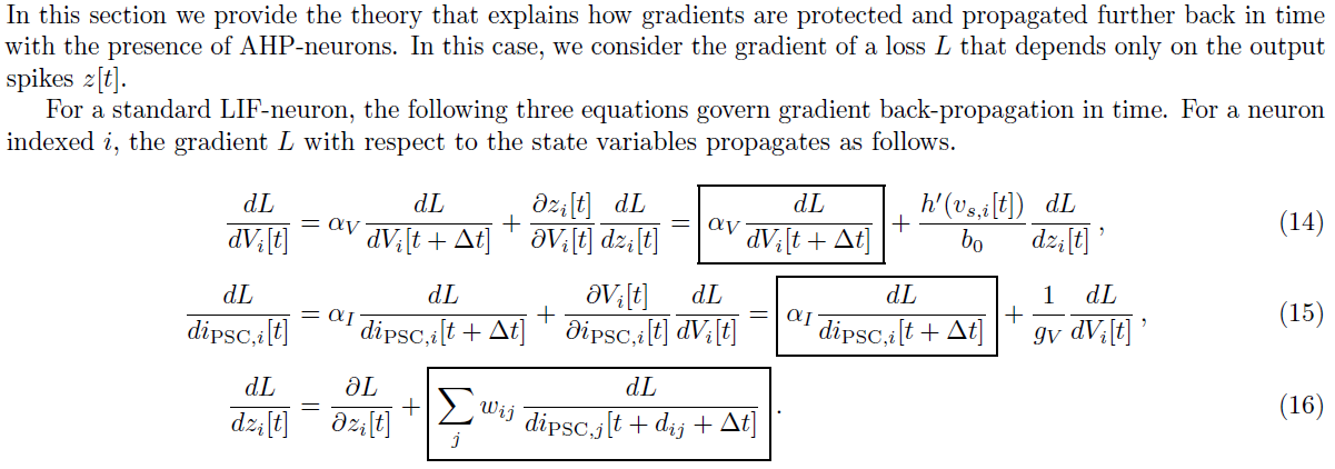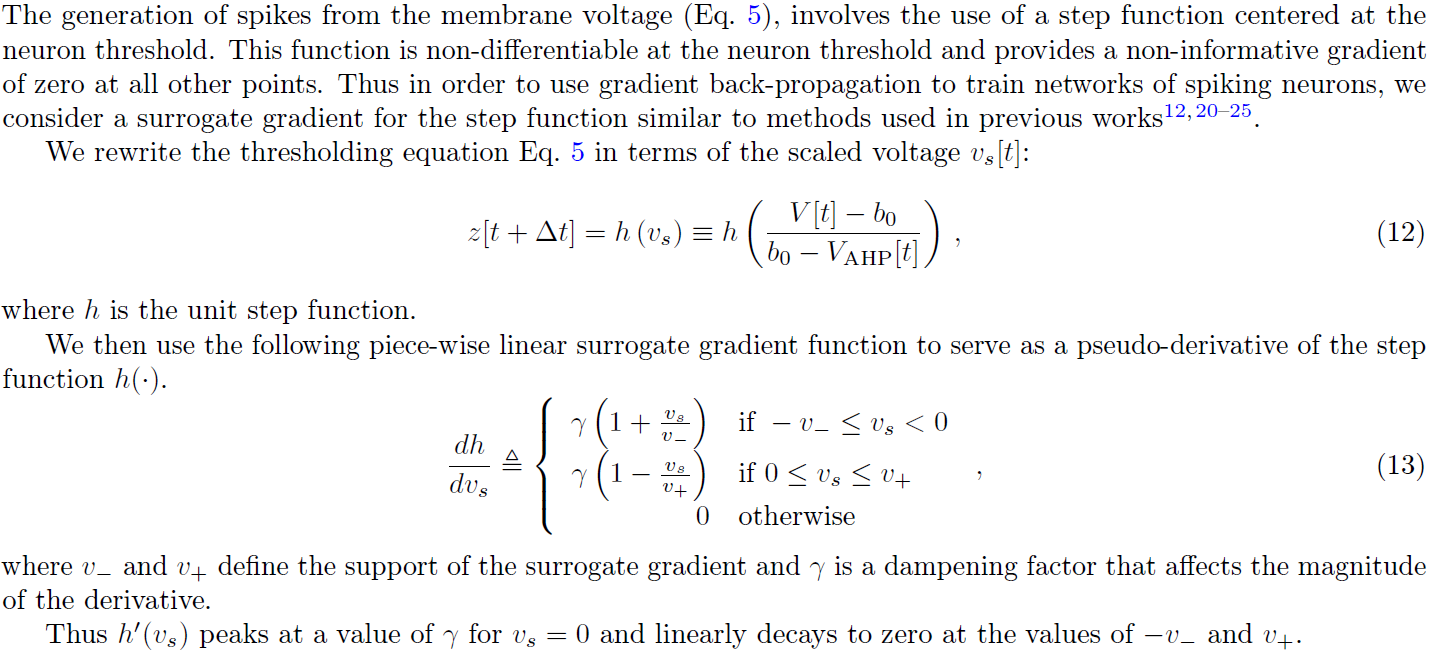 在本节中,我们将描述与LIF神经元和AHP神经元网络训练有关的重要细节。在下面的所有公式中,为简洁起见,我们删除了神经元索引 j。