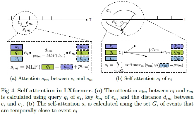 与仅具有随时间变化的一维动态的语言数据不同,相机捕获的事件表现出空间和时间的变化。除了在LXformer中使用M个时间最接近的事件来利用1D时间相关性进行局部嵌入之外,我们还建议在2D空间中使用另一种局部嵌入来利用2D空间相关性。