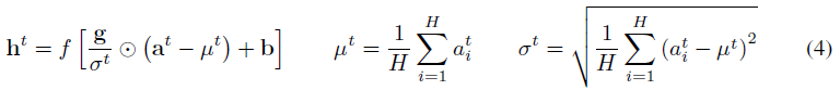 。层归一化的循环层使用类似于公式(3)的额外归一化项重新定中心并重新缩放其激活: