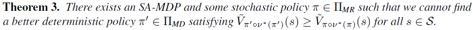 其中π和v都不是固定的。第一个问题是,我们需要为π*考虑哪些策略类别。在MDP中,确定性策略就足够了。我们表明,这在SA-MDP中不再适用: