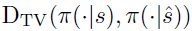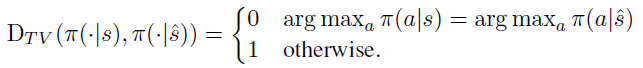 时,π(a|s)=1,否则为0。这种情况下的总方差距离为: