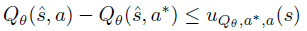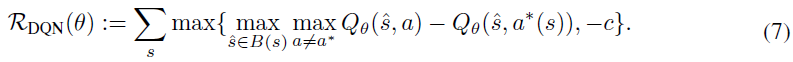 Robustness Certificates for DQN. 在DQN中,动作空间是有限的,因此我们有一个关于在每个状态下采取的动作的鲁棒性证书。更具体地说,在每个状态s,如果其相应的Q函数满足下式,则策略的动作是认证的: