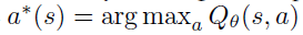 DQN的动作空间是有限的,并且确定性动作由最大Q值确定:当