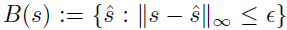 在我们的实验2中,对抗性状态集合B(s)被定义为围绕s的“l∞范数球”,半径为ε: