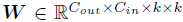 中的2维矩阵,以完成更新,其中k是核大小,Cin, Cout是输入和输出通道的数量。