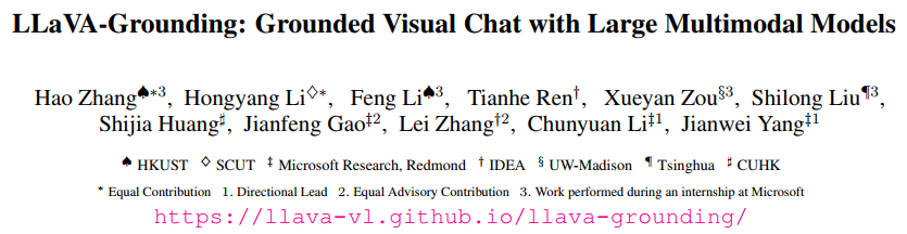 随着GPT4 [25]等大语言模型和开源替代品LLaMA [31]的成功,研究人员渴望在视觉领域利用其强大的语言能力。这种热情导致了大型多模态模型(LLM)的开发激增。以前的LMM,如LLaVA [18]和miniGPT-4 [49],通过基于图像和用户指令生成合理的响应,已经证明了非凡的视觉聊天能力。然而,他们在提供对图像表现出细粒度理解的响应方面经常遇到挑战,包括特定区域和与相关图像区域的对齐——这通常被称为视觉定位。