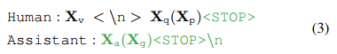 我们提出了一个三阶段的训练策略,如表3所示。这些阶段是对齐预训练、定位视觉聊天的指令调整以及视觉提示词的扩展。我们的指令遵循数据的统一表征如下: