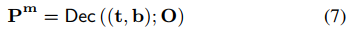 。然而,对于检测数据Db,我们仅得到粗略的位置(框)和类别。然后一个有趣的问题来了——给定这些先验,我们能得到它的掩码吗?为了解决这个问题,我们求助于包含从标签和框到掩码的丰富映射的分割数据,即(c, b) → m,并提出条件掩码解码来学习映射,如图3最右侧部分所示。给定基本事实概念和框(c, b),我们使用解码器来解码掩码:
