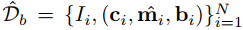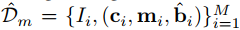 表示大小为N的检测数据集,其中c是图像中的视觉概念,m和b分别是相应的掩码和框。假设