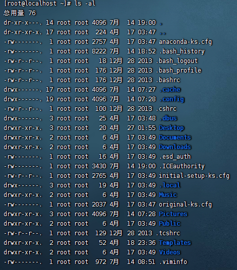 1)-a:列出全部文件(包括隐藏文件)(文件毅.开头的就自动隐藏)
