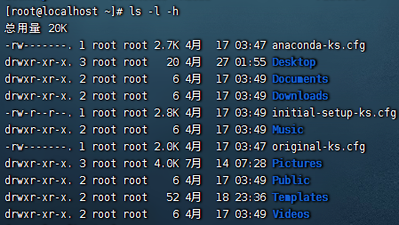 3)-h:将文件大小的表示易于理解(必须与-l组合使用)