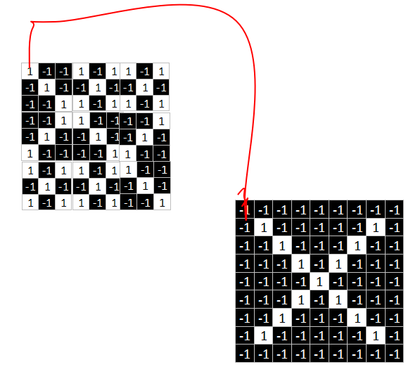 其中1代表白色,-1代表黑色。