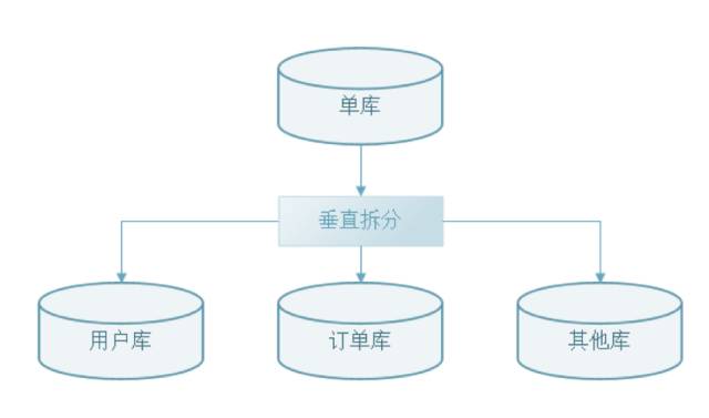 垂直拆库是根据数据库里面的数据表的相关性进行拆分,比如:一个数据库里面既存在用户数据,又存在订单数据,那么垂直拆分可以把用户数据放到用户库、把订单数据放到订单库。如下图: