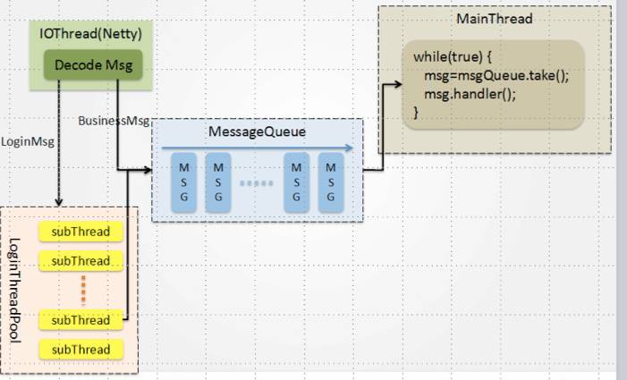 异步-多线程,基于每个场景(或者房间),分配一个线程。每个场景的玩家同属于一个线程。游戏的场景是固定的,不会很多,如此线程的数量可以保证不会不断增大。每个场景线程,同样采用tick轮询的方式,来定时更新该场景内的(对象状态,刷新地图,刷新NPC)数据状态。玩家如果跨场景的话,就采用投递和通知的方式,告知两个场景线程,以此更新两个场景的玩家数据。