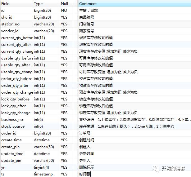 另外将库存系统的核心表结构设计提供出来供大家参考