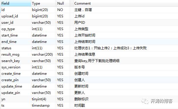 库存批量操作日志表,命名规则:batch_upload_log