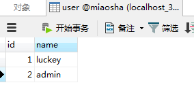 备注:如果去掉@Transactional 注解或者捕捉异常,则会新增一条id为2的记录