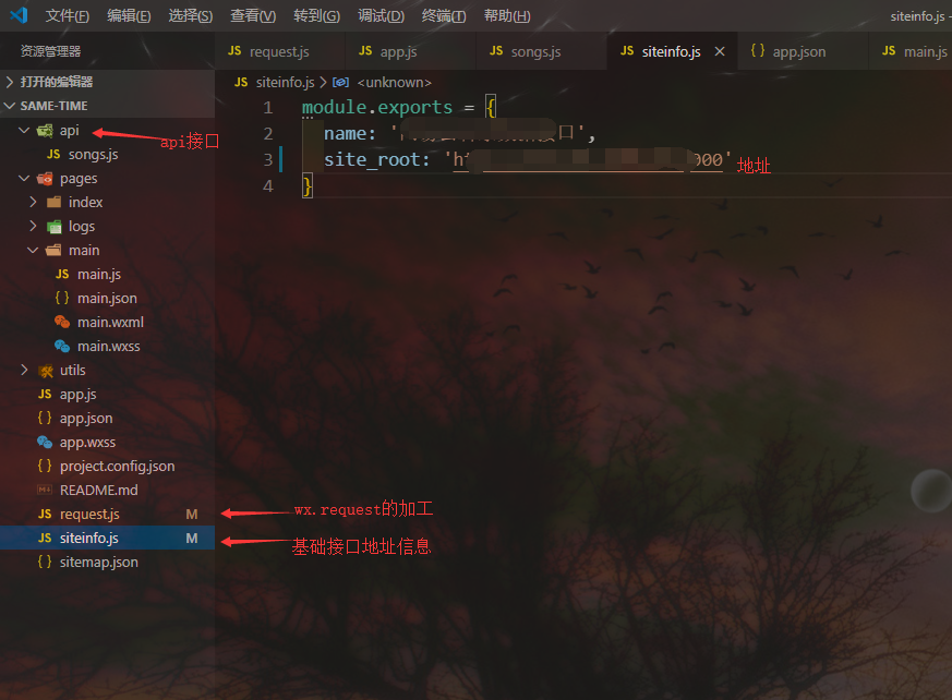 site_root: '公共接口' // 公共接口地址 如:http://123.123.123.123:3000