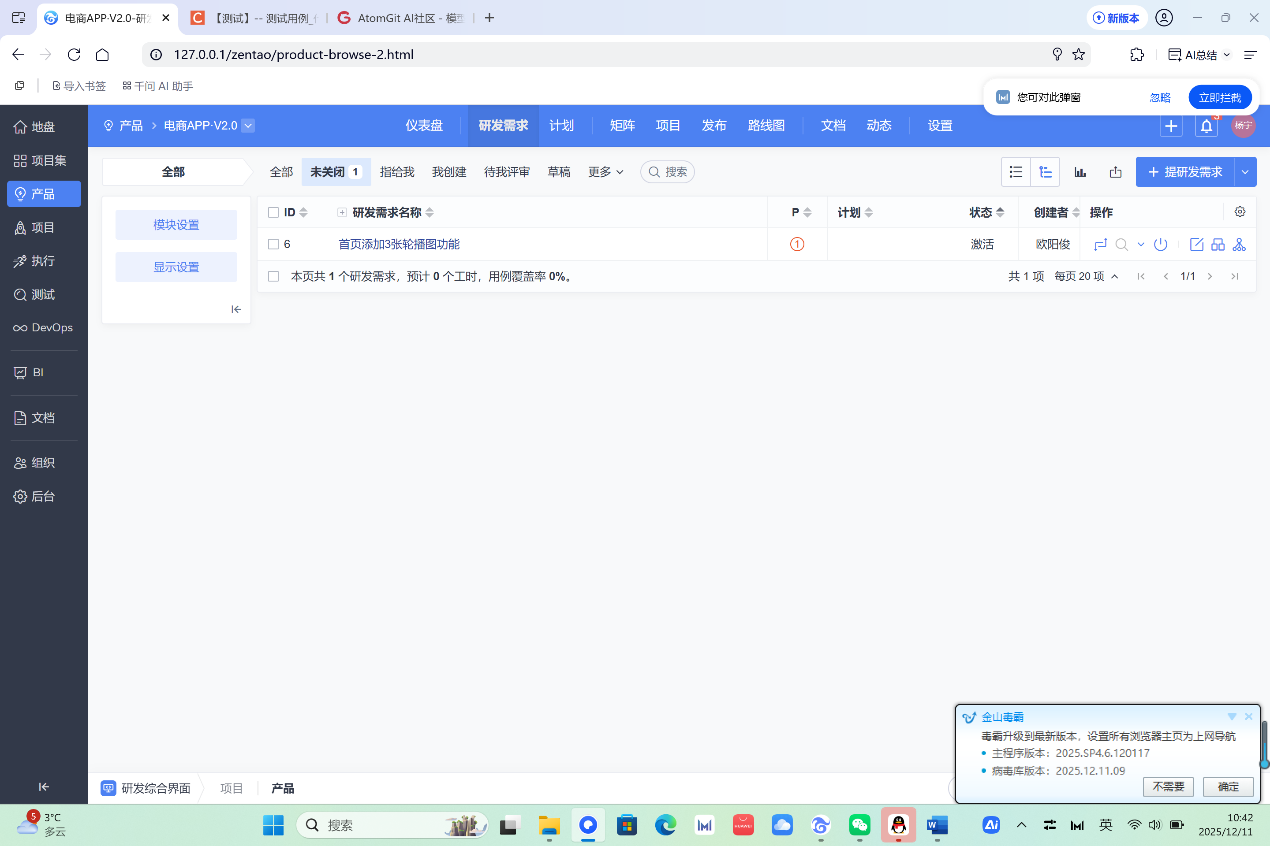 - 步骤1:创建产品(基础准备)——点击“产品-创建产品”,填写产品名称(如“电商APP V2.0”),描述填“用于线上商品销售的移动端应用”,点击“保存”。