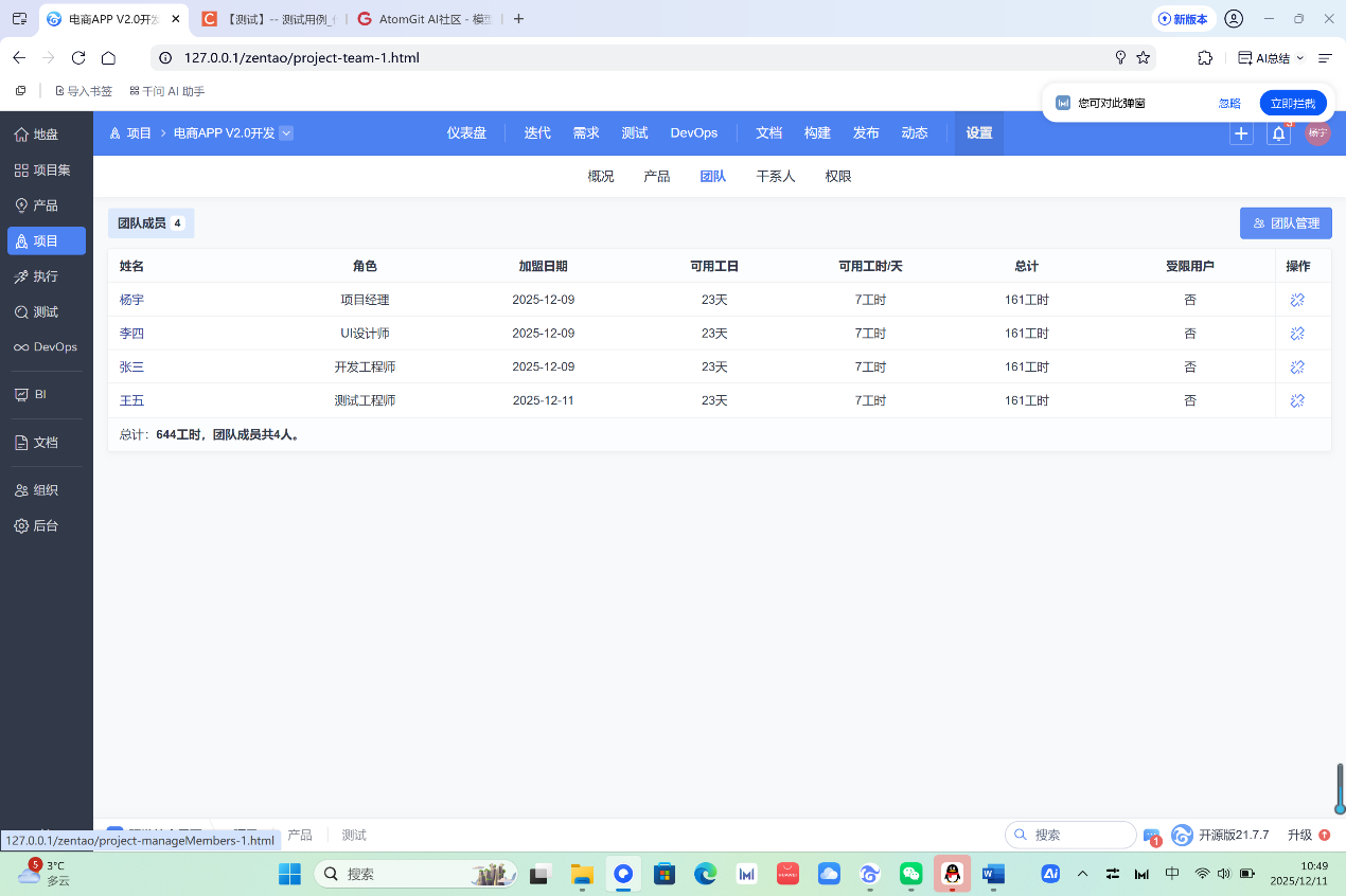 - 步骤2:添加项目团队——点击“操作栏团队-添加成员”,勾选开发工程师(如“张三”)、UI设计师(如“李四”)、测试工程师(如“王五”),分别设置角色,点击“保存”。