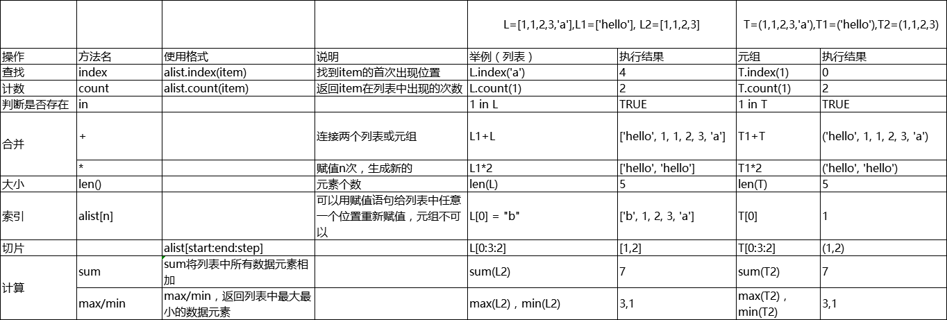 列表或元组中保存的各个数据叫元素,没有类型限制。