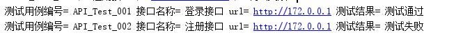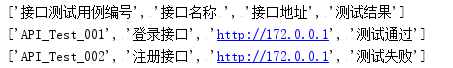 print("测试用例编号=", row1, "接口名称=", row2, "url=", row3, "测试结果=", row4)