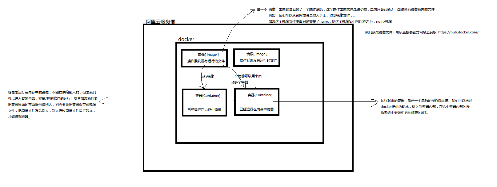 必须先有镜像,才能运行创建容器,需要指定使用的镜像名,并且设置创建容器以后,执行对应的第一条命令
