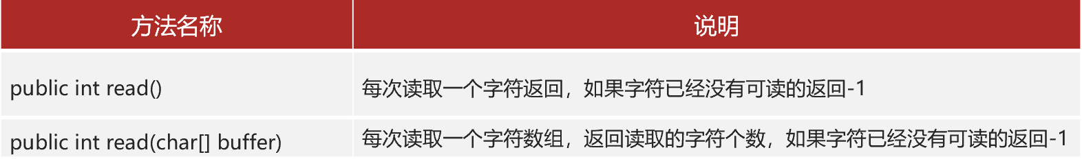 - 作用:以内存为基准,把磁盘文件中的数据以字符的形式读取到内存中去。