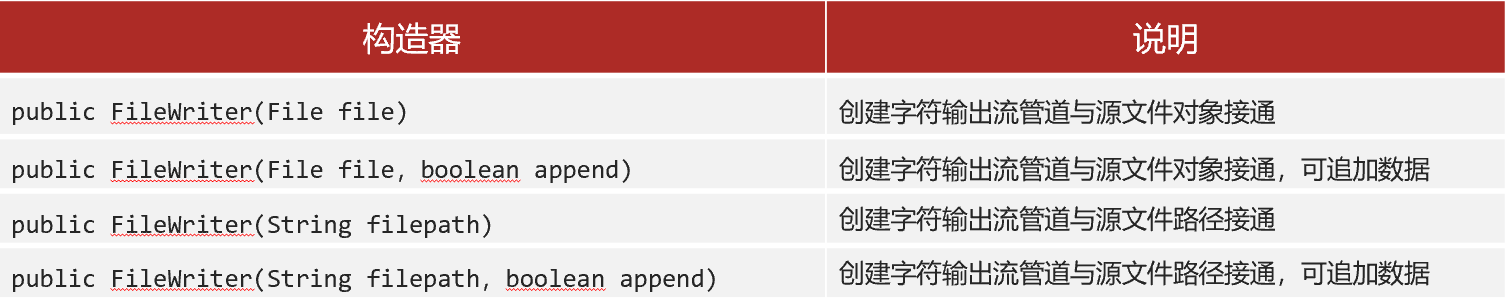 - 作用:以内存为基准,把内存中的数据以字符的形式写出到磁盘文件中去的流。