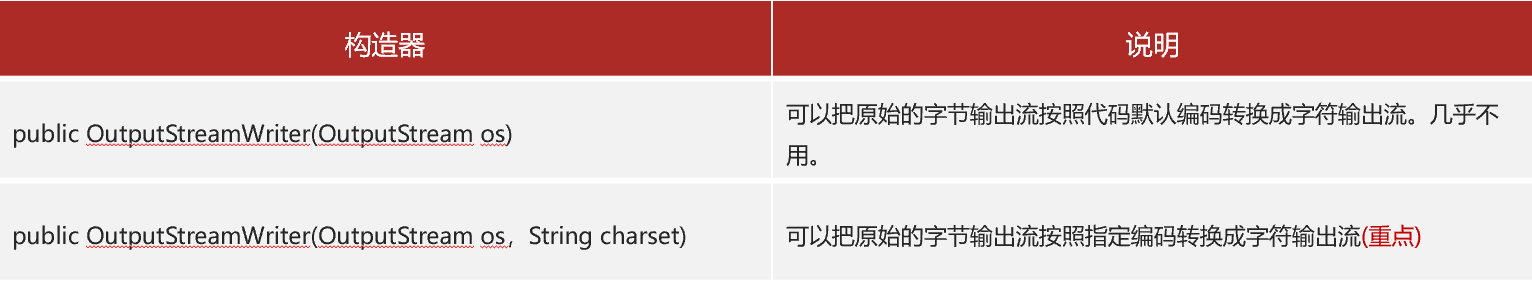 字符输入转换流OutputStreamWriter作用:可以把字节输出流按照指定编码转换成字符输出流,从而可以指定写出去的字符编码。