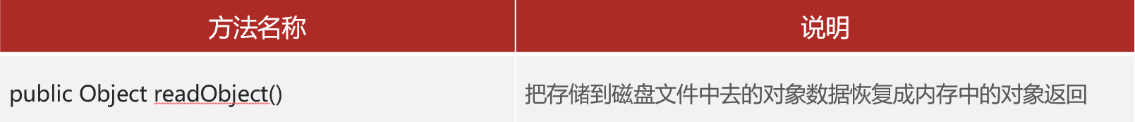 作用:以内存为基准,把存储到磁盘文件中去的对象数据恢复成内存中的对象,称为对象反序列化。