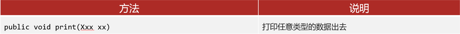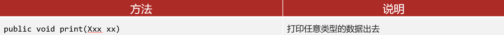 - 可以实现打印什么数据就是什么数据,例如打印整数97写出去就是97,打印boolean的true,写出去就是true。