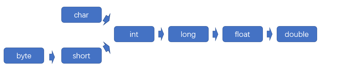 对于基础类型,按上图顺序可以自动进行类型转换。但整型转化为浮点型时,如果数据过大可能会导致数据丢失精度。