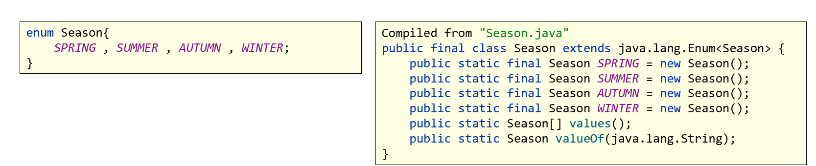 (JDK 1.5 新增)比 Class 类多了部分特殊约束的特殊类型,能更加简洁地定义常量。