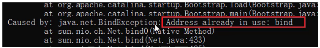 - Tomcat的端口号取值范围是0-65535之间任意未被占用的端口,如果设置的端口号被占用,启动的时候就会包如下的错误