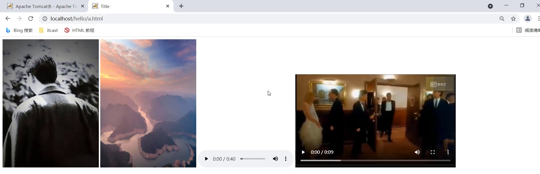 * 通过浏览器访问`http://localhost/hello/a.html`,能看到下面的内容就说明项目已经部署成功。
