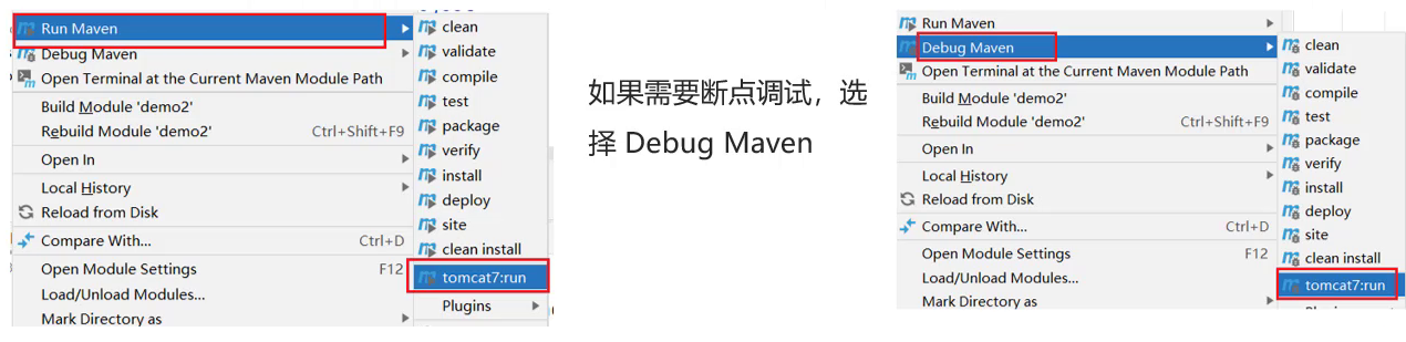 - 2.使用Maven Helper插件快速启动项目,选中项目,右键-->Run Maven --> tomcat7:run