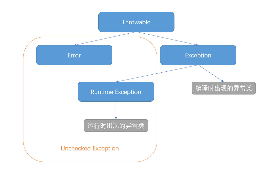 表示 java 程序运行状态中发生的异常,在编译时无法被检测。在 java 程序运行时会由系统自动抛出,允许应用程序不进行处理。