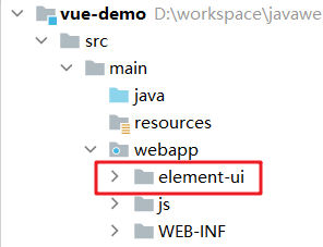 element-ui文件夹直接拷贝到项目的webapp下。目录结构如下