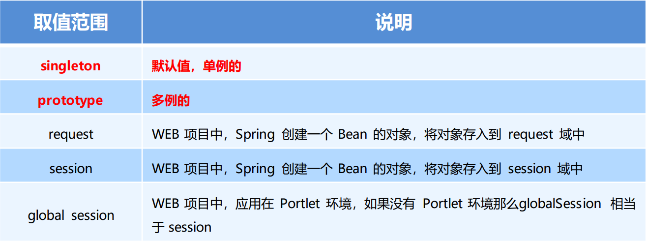 <bean id="userDao" class="com.itheima.dao.impl.UserDaoImpl" scope="singleton"></bean>