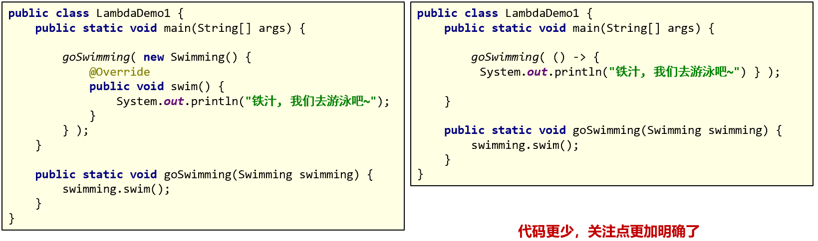 - 作用:简化函数式接口的匿名内部类的代码写法。