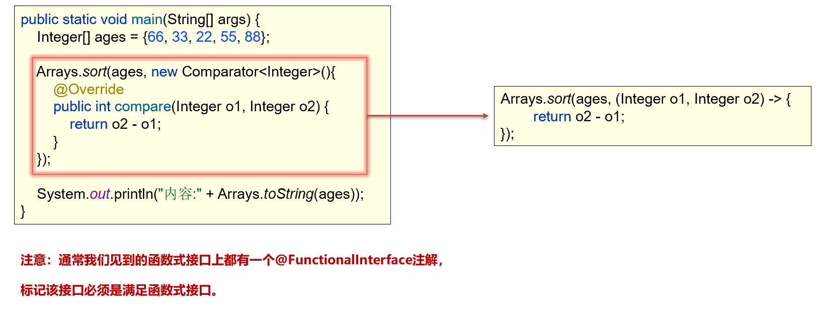 - 通常我们会在接口上加一个@FunctionalInterface注解,标记该接口必须是满足函数式接口