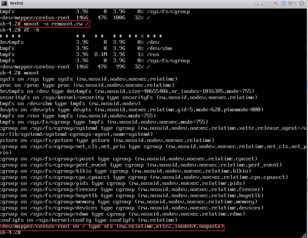 单用户模式在默认情况夏,根文件系统是只读的(ro),不可以做任何修改,为了更改密码,需要以rw的方式重新挂载根文件系统。